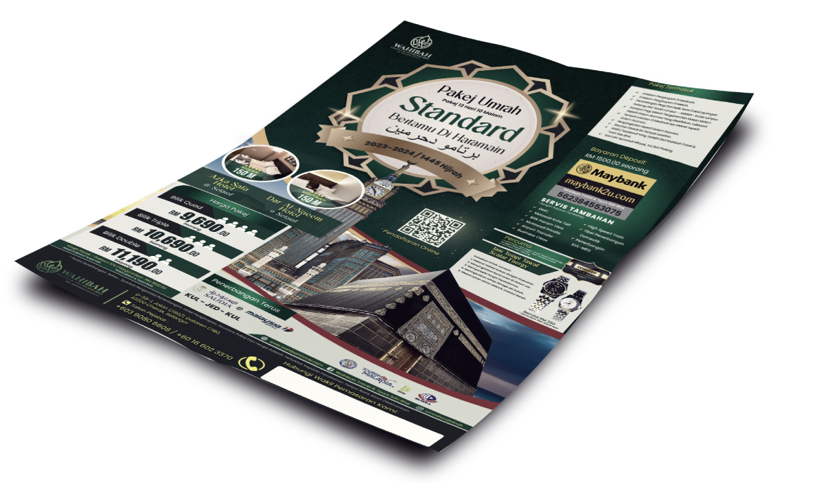 Poster & flyer Pakej Umrah untuk edaran kepada bakal pelanggan.