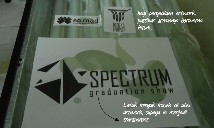 Ratakan minyak masak di atas keseluruhan rekaan sehingga kertas tersebut menjadi lutsinar. Kemudian ikuti langkah-langkah dalam proses expose blok di bawah ini.