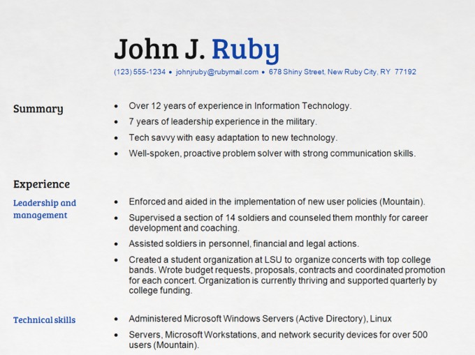 - Layout resume yang terus menyenaraikan pengalaman bekerja, kemahiran-kemahiran yang diperlukan untuk jawatan yang dipohon.