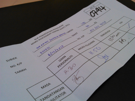 Terdapat perbezaan antara program MAC 2013 dengan MAC 2017 yang saya hadiri. Perbezaan ketara adalah pada perjalanan program temuduga ini. Berpandukan kepada slip pendaftaran ini anda dapat lihat: