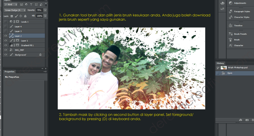 Beginilah hasilnya selepas anda menggunakan brush tool. Anda boleh mencuba pelbagai jenis brush sehingga mendapat hasil yang dihajati.
