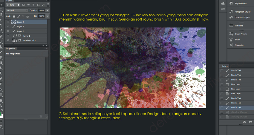 Tujuan menggunakan 3 layer warna berbeza ini adalah bagi mendapatkan kesan warna-warni seumpama kesan menggunakan warna air. Anda juga boleh mencuba menggunakan warna lain mengikut kesesuaian.