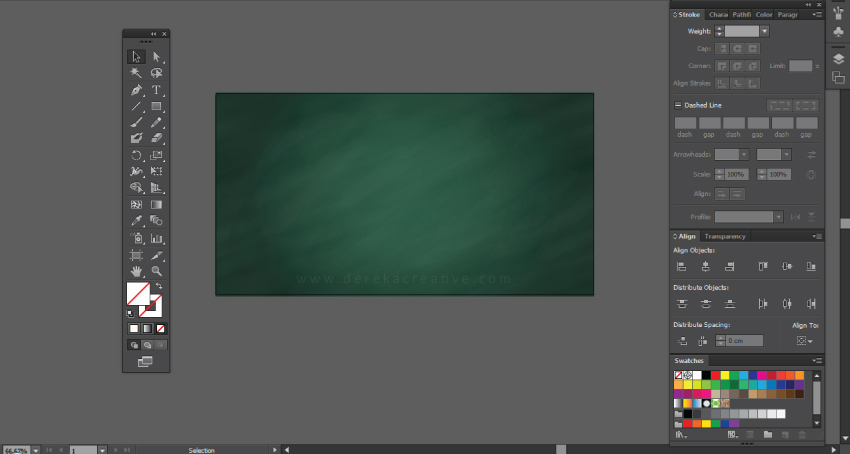 Setelah di-aktifkan graphic styles tersebut, anda hanya perlu 'select all' dan 'click' pada graphic styles yang diminati. Anda boleh cuba satu persatu untuk melihat kesan-kesan chalk board yang timbul.