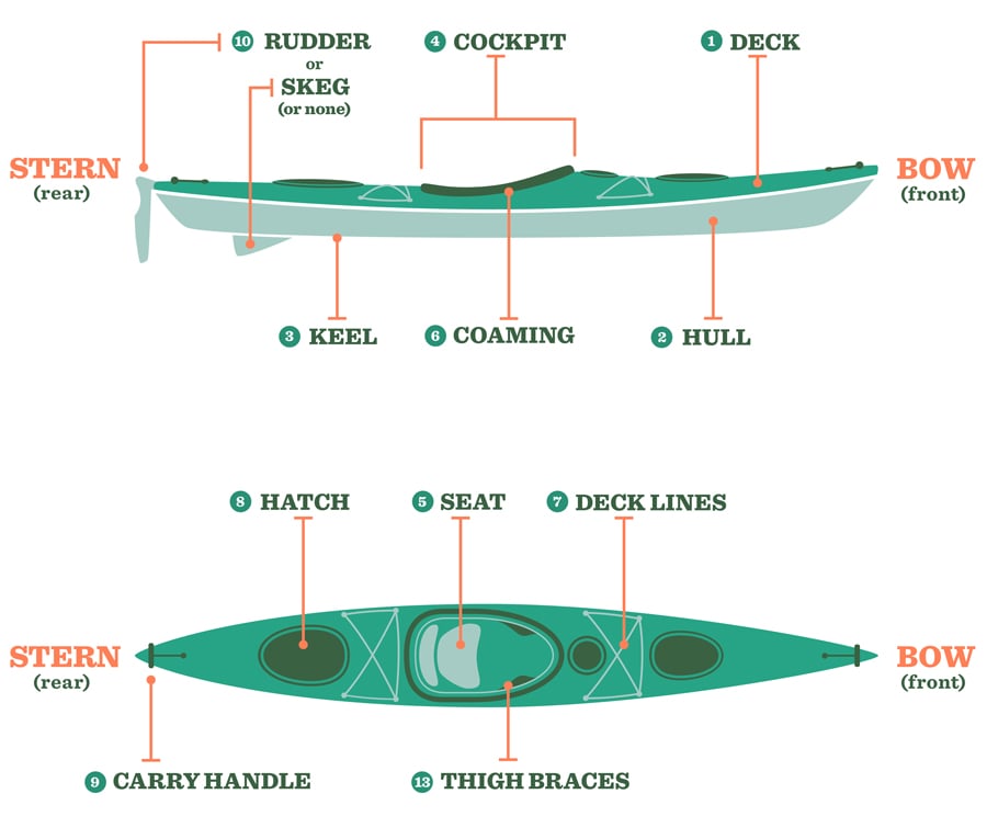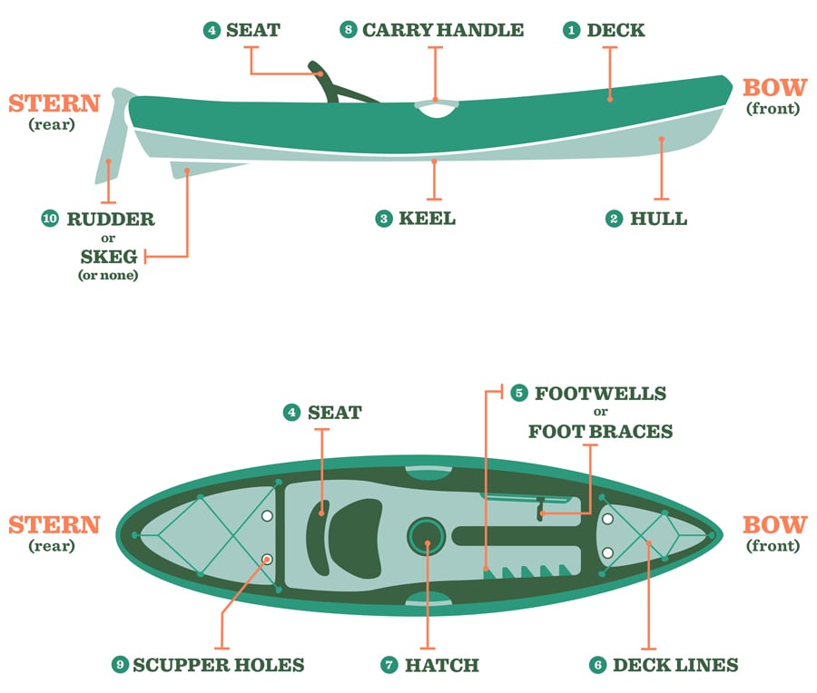 Asas anatomi sebuah kayak ialah seperti berikut: